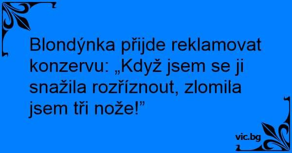 Blondýnka přijde reklamovat konzervu: „Když jsem se ji snažila rozříznout, zlomila jsem tři nože!”