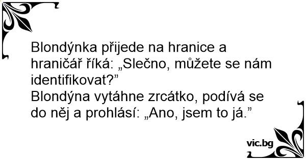 Blondýnka přijede na hranice a hraničář říká: „Slečno, můžete se nám identifikovat?”