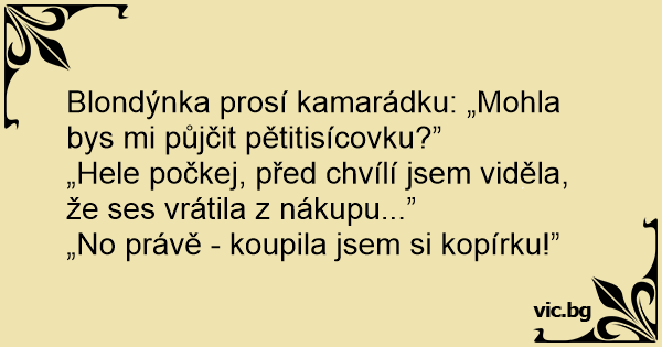 Blondýnka prosí kamarádku: „Mohla bys mi půjčit pětitisícovku?”