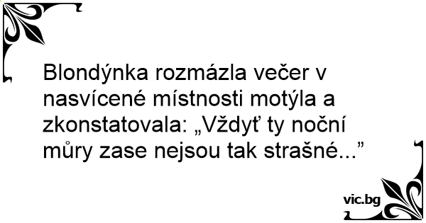 Blondýnka rozmázla večer v nasvícené místnosti motýla a zkonstatovala: „Vždyť ty noční můry zase nejsou tak strašné...”