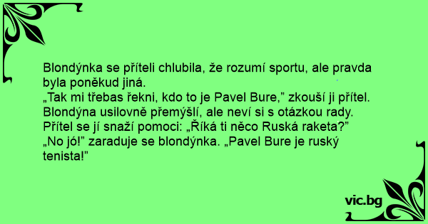 „No jó!” zaraduje se blondýnka. „Pavel Bure je ruský tenista!”