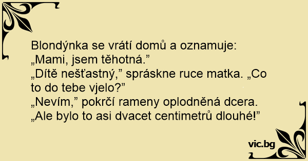 Blondýnka se vrátí domů a oznamuje: „Mami, jsem těhotná.”