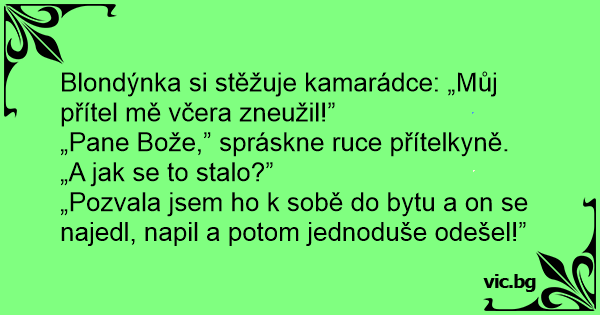 „Pane Bože,” spráskne ruce přítelkyně. „A jak se to stalo?”
