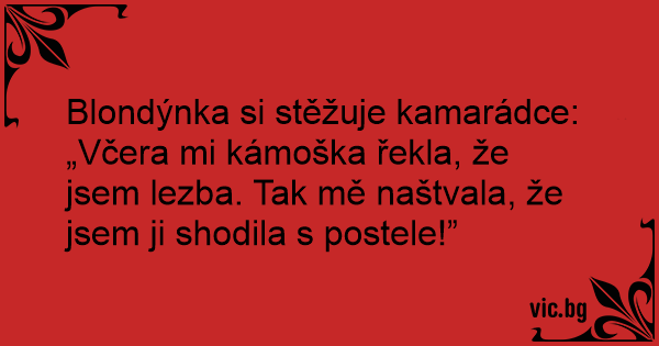 Blondýnka si stěžuje kamarádce: „Včera mi kámoška řekla, že jsem lezba. Tak mě naštvala, že jsem ji shodila s postele!”