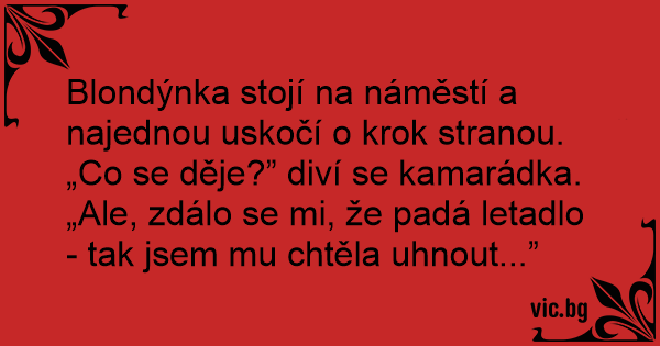 Blondýnka stojí na náměstí a najednou uskočí o krok stranou.