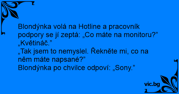 Blondýnka volá na Hotline a pracovník podpory se jí zeptá: „Co máte na monitoru?”
