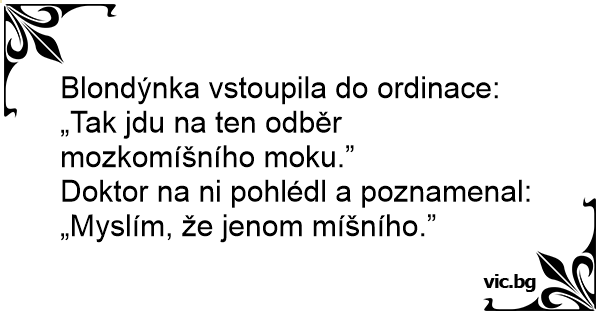 Blondýnka vstoupila do ordinace: „Tak jdu na ten odběr mozkomíšního moku.”
