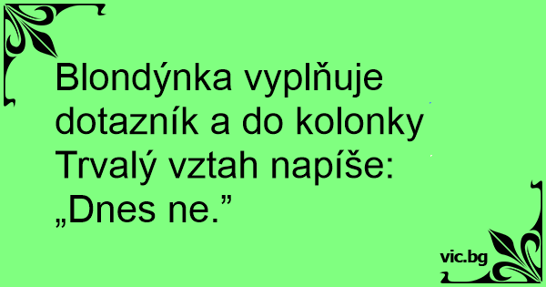 Blondýnka vyplňuje dotazník a do kolonky Trvalý vztah napíše: „Dnes ne.”