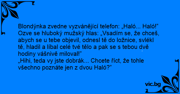 Blondýnka zvedne vyzvánějící telefon: „Haló... Haló!”
