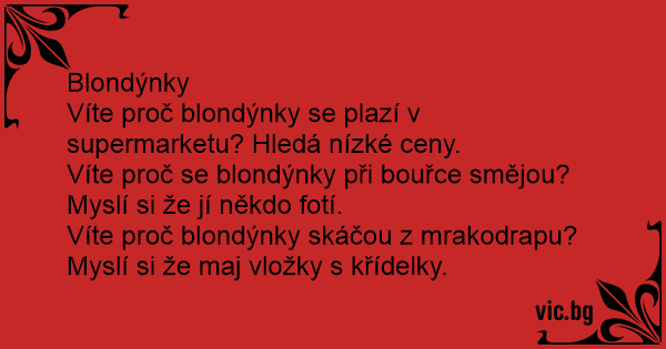 Víte proč blondýnky se plazí v supermarketu? Hledá nízké ceny.