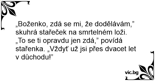 „To se ti opravdu jen zdá,” povídá stařenka. „Vždyť už jsi přes dvacet let v důchodu!”