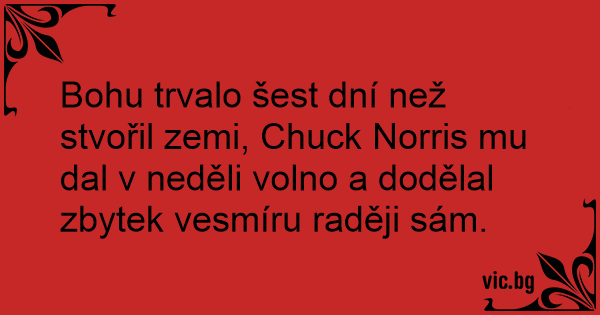 Bohu trvalo šest dní než stvořil zemi, Chuck Norris mu dal v neděli volno a dodělal zbytek vesmíru raději sám.