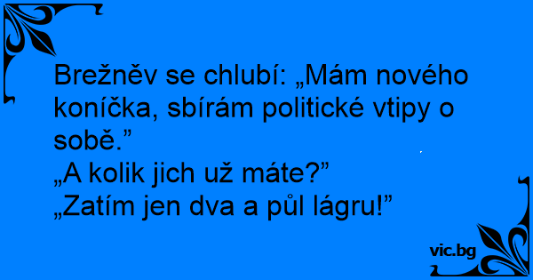 - Brezsnyev elvtárs, mi az ön hobbija? - Saját magamról szóló vicceket gyűjtök... - És mennyit sikerült összegyűjtenie? - Három láger már tele van.
