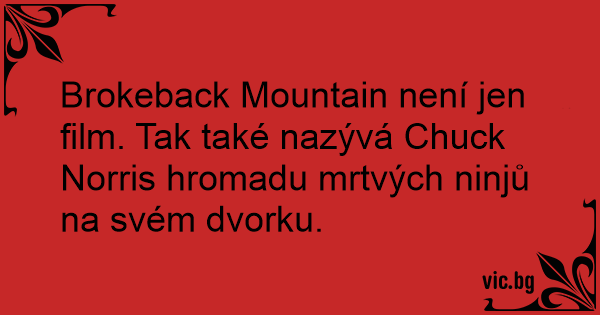 Brokeback Mountain není jen film. Tak také nazývá Chuck Norris hromadu mrtvých ninjů na svém dvorku.