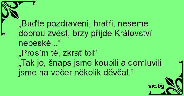 „Buďte pozdraveni, bratři, neseme dobrou zvěst, brzy přijde Království nebeské...”