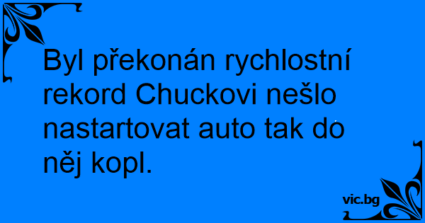 Byl překonán rychlostní rekord Chuckovi nešlo nastartovat auto tak do něj kopl.