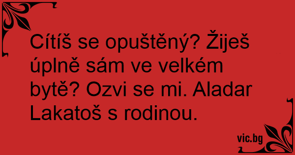 Cítíš se opuštěný? Žiješ úplně sám ve velkém bytě? Ozvi se mi. Aladar Lakatoš s rodinou.