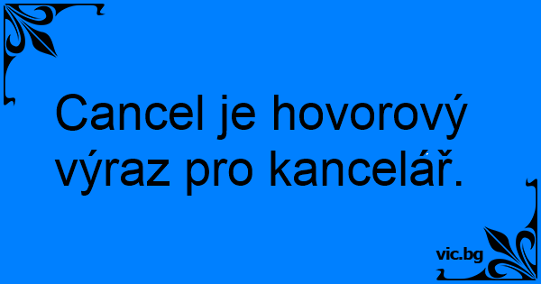Cancel je hovorový výraz pro kancelář.