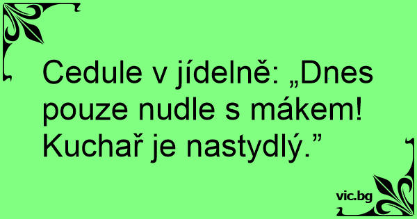 Cedule v jídelně: „Dnes pouze nudle s mákem! Kuchař je nastydlý.”