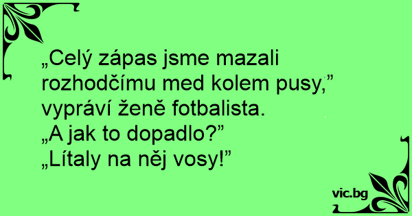„Celý zápas jsme mazali rozhodčímu med kolem pusy,” vypráví ženě fotbalista.