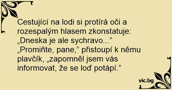 „Promiňte, pane,” přistoupí k němu plavčík, „zapomněl jsem vás informovat, že se loď potápí.”