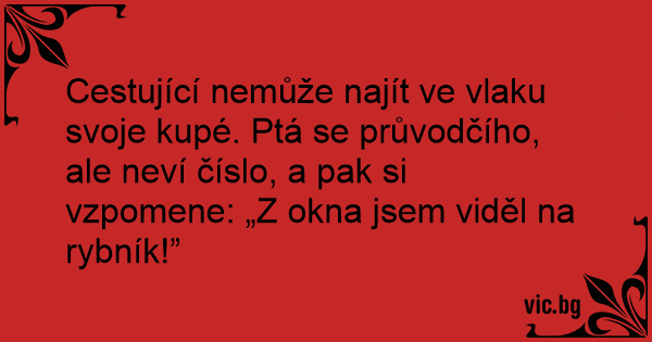 Cestující nemůže najít ve vlaku svoje kupé. Ptá se průvodčího, ale neví číslo, a pak si vzpomene: „Z okna jsem viděl na rybník!”
