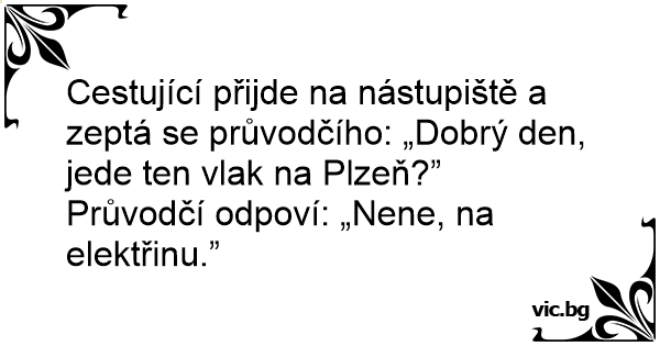 Cestující přijde na nástupiště a zeptá se průvodčího: „Dobrý den, jede ten vlak na Plzeň?”