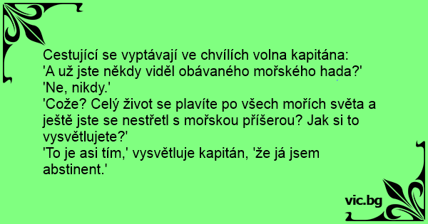 'To je asi tím,' vysvětluje kapitán, 'že já jsem abstinent.'