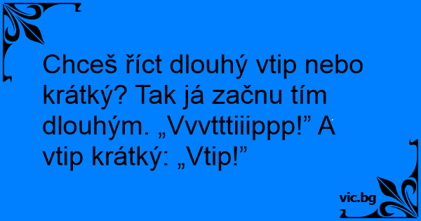 Chceš říct dlouhý vtip nebo krátký? Tak já začnu tím dlouhým. „Vvvtttiiippp!” A vtip krátký: „Vtip!”