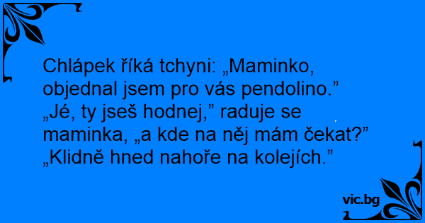 Chlápek říká tchyni: „Maminko, objednal jsem pro vás pendolino.”