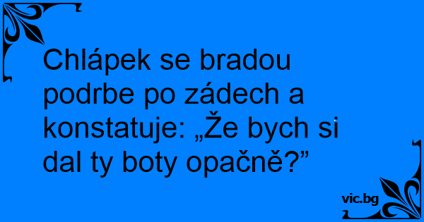 Chlápek se bradou podrbe po zádech a konstatuje: „Že bych si dal ty boty opačně?”