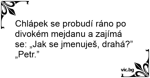 Chlápek se probudí ráno po divokém mejdanu a zajímá se: „Jak se jmenuješ, drahá?”