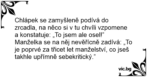 Manželka se na něj nevěřícně zadívá: „To je poprvé za třicet let manželství, co jseš takhle upřímně sebekritický.”
