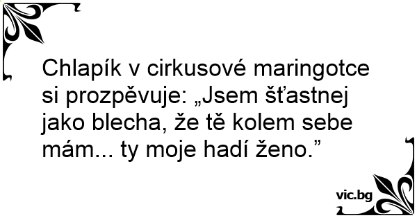Chlapík v cirkusové maringotce si prozpěvuje: „Jsem šťastnej jako blecha, že tě kolem sebe mám... ty moje hadí ženo.”