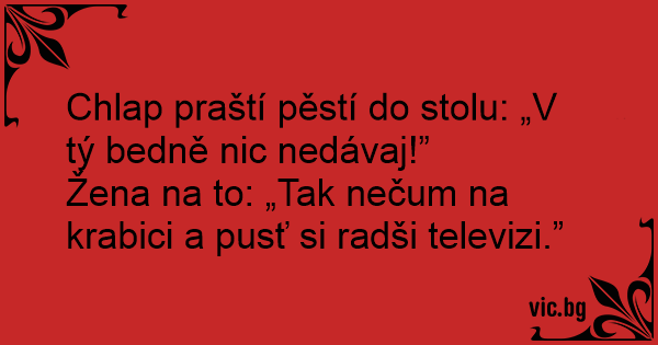 Žena na to: „Tak nečum na krabici a pusť si radši televizi.”