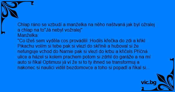 Chlap ráno se vzbudí a manželka na něho naštvaná jak byl ožralej a chlap na to"Já nebyl vožralej"