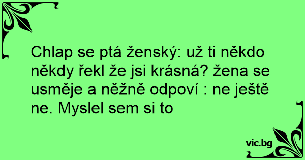 Chlap se ptá ženský: už ti někdo někdy řekl že jsi krásná? žena se usměje a něžně odpoví : ne ještě ne. Myslel sem si to