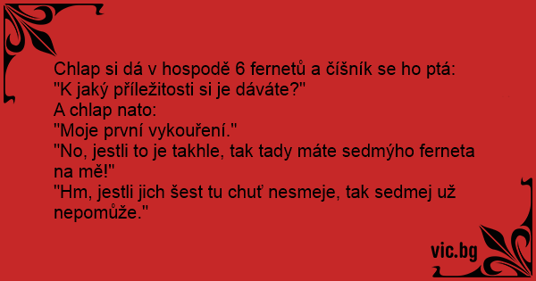 "No, jestli to je takhle, tak tady máte sedmýho ferneta na mě!"