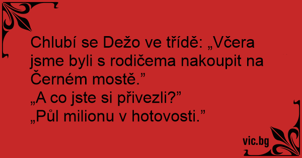 Chlubí se Dežo ve třídě: „Včera jsme byli s rodičema nakoupit na Černém mostě.”