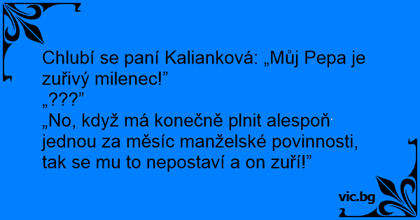 „No, když má konečně plnit alespoň jednou za měsíc manželské povinnosti, tak se mu to nepostaví a on zuří!”
