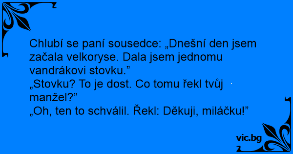 Chlubí se paní sousedce: „Dnešní den jsem začala velkoryse. Dala jsem jednomu vandrákovi stovku.”