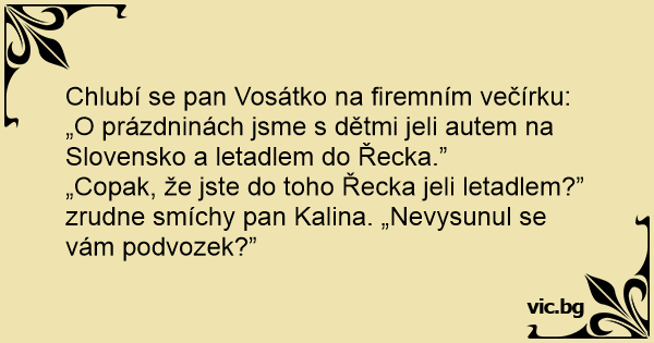 Chlubí se pan Vosátko na firemním večírku: „O prázdninách jsme s dětmi jeli autem na Slovensko a letadlem do Řecka.”