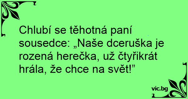 Chlubí se těhotná paní sousedce: „Naše dceruška je rozená herečka, už čtyřikrát hrála, že chce na svět!”
