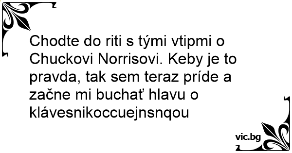 Chodte do riti s tými vtipmi o Chuckovi Norrisovi. Keby je to pravda, tak sem teraz príde a začne mi buchať hlavu o klávesnikoccuejnsnqou