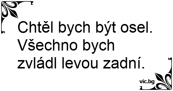 Chtěl bych být osel. Všechno bych zvládl levou zadní.