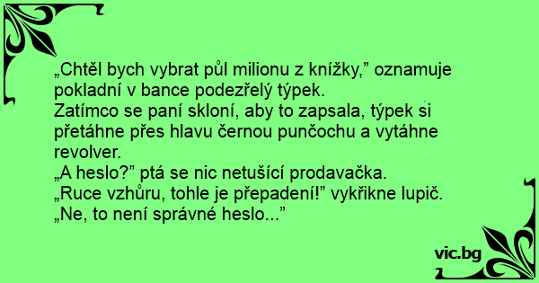 „A heslo?” ptá se nic netušící prodavačka.