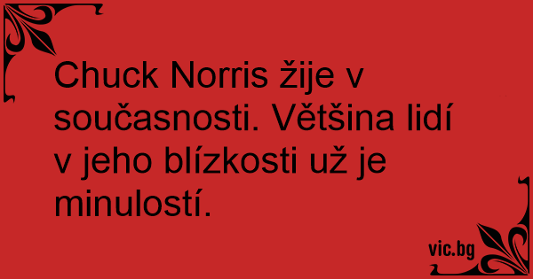 Chuck Norris žije v současnosti. Většina lidí v jeho blízkosti už je minulostí.