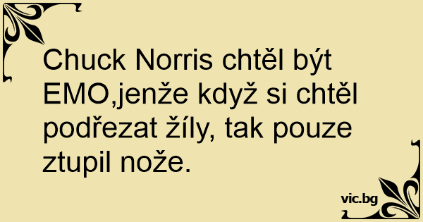 Chuck Norris chtěl být EMO,jenže když si chtěl podřezat žíly, tak pouze ztupil nože.