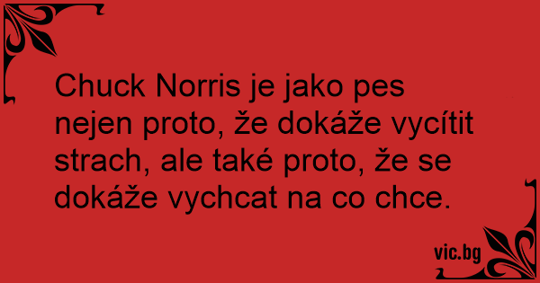 Chuck Norris je jako pes nejen proto, že dokáže vycítit strach, ale také proto, že se dokáže vychcat na co chce.