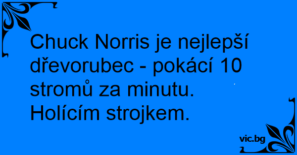 Chuck Norris je nejlepší dřevorubec - pokácí 10 stromů za minutu. Holícím strojkem.